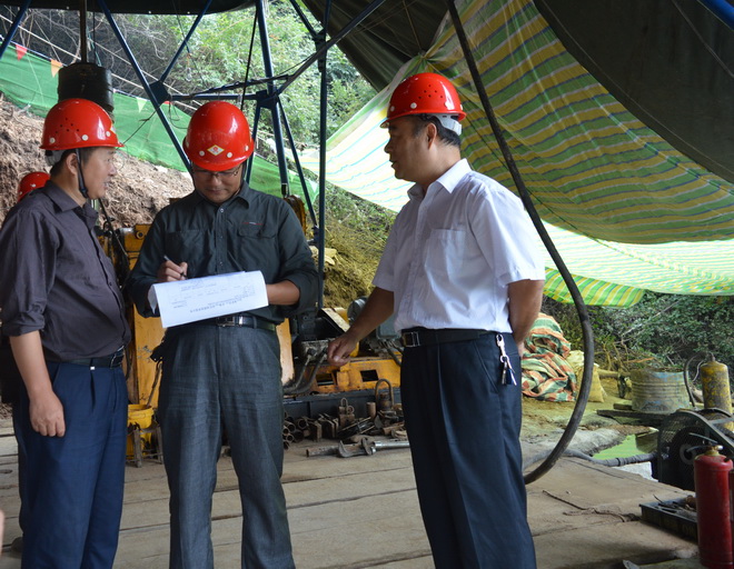 8月18日小秦嶺金礦田成礦規律與深部成礦預測研究的深孔驗證項目第二個鉆孔正式開鉆,鉆孔設計孔深1880米。隊黨委書記兼副隊長王戰社、紀委書記王和平及省基金辦、省地調中心等單位有關領導參加了開工儀式。