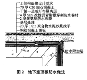 地下室頂板防水做法,見(jiàn)圖2。