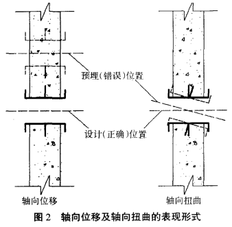 預(yù)埋套管安裝位置不準(zhǔn)確的實(shí)際情況多為軸向位移與軸向扭曲的復(fù)合體。