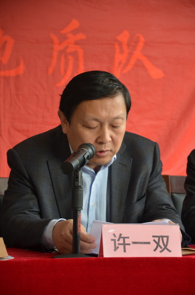 會議由隊黨委委員、隊長王根寶主持。西安市國資委黨委副書記兼紀委書記許一雙、西安市國資委正處級調研員胡國強、省地礦總公司黨委副書記兼工會主席吳學海、省地礦總公司工會常務副主席兼黨群工作部主任王建洲、省地礦總公司黨群工作部主辦科員姚鵬等上級領導出席了大會。許一雙副書記、吳學海副書記分別在會上作了講話。