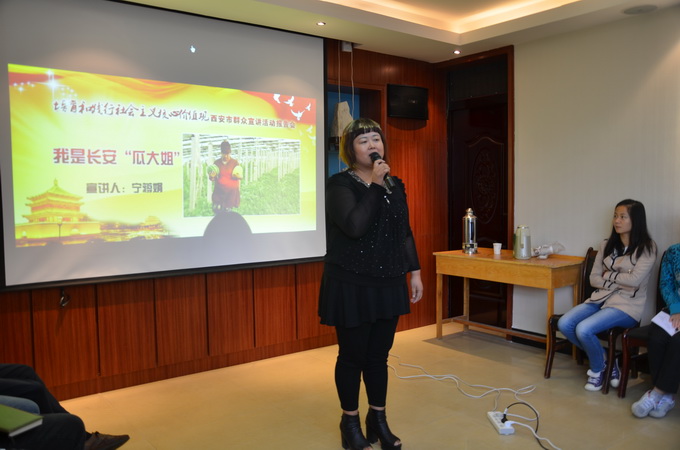 此次報(bào)告會(huì)共有五位宣講員分別作了聲情并茂的宣講,引起了現(xiàn)場(chǎng)觀眾的共鳴。未央?yún)^(qū)七旬文明引導(dǎo)員李清源,用自己的親身經(jīng)歷講述文明故事;工商臨潼分局丁紅軍講述了為外國(guó)游客討回26000元的故事;臨潼區(qū)西泉街道閆紅,講述半路夫妻的公公對(duì)臥病在床多年的婆婆不離不棄的感人故事;帶領(lǐng)農(nóng)民共同致富的長(zhǎng)安區(qū)農(nóng)民企業(yè)家寧蔣娟講述了自己的艱辛的奮斗歷程;長(zhǎng)安東大的上門女婿劉安民待岳母如親娘,感動(dòng)鄉(xiāng)鄰,他用行動(dòng)詮釋了“百善孝為先”的古訓(xùn)。宣講員以親歷親聞的身邊人身邊事,對(duì)社會(huì)主義核心價(jià)值觀進(jìn)行了詮釋,激勵(lì)和感染了每一位員工,會(huì)場(chǎng)不斷爆發(fā)出熱烈的掌聲。
