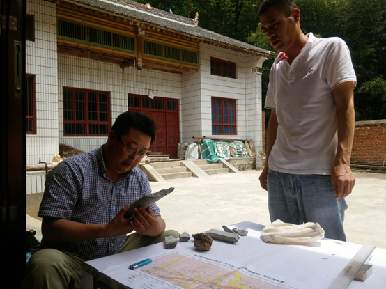 在洛南縣瑪瑙石礦區,隊領導與項目技術人員圍坐在農家小院,攤開圖紙,一起對工作區寶石礦成礦條件進行分析研究,并深入工區一線進行了實地踏勘。隨后又馬不停蹄對商州市藍田玉礦工作靶區及當地正在開發的藍田玉礦企業的采礦工藝和流程進行了考察。
