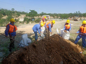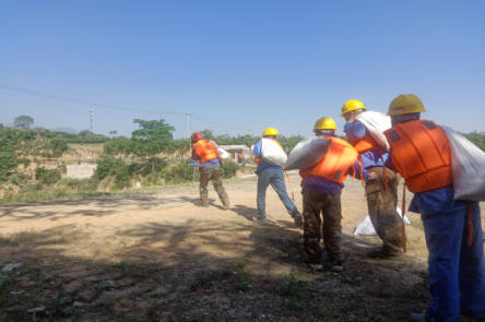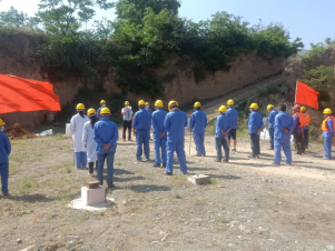 當(dāng)日上午8點(diǎn)整,秦太選廠組織相關(guān)參與人員在辦公樓前進(jìn)行集中,并對(duì)本次演習(xí)簡(jiǎn)要講解。本次演習(xí)假設(shè)場(chǎng)景為連續(xù)強(qiáng)降雨,導(dǎo)致有洪水漫入庫內(nèi)并發(fā)現(xiàn)排洪渠內(nèi)有樹木雜草,庫內(nèi)水位不斷上升已接近警戒線,存在漫壩危險(xiǎn),需啟動(dòng)應(yīng)急預(yù)案。演習(xí)地點(diǎn)為寺溝尾礦庫。演習(xí)內(nèi)容為監(jiān)測(cè)人員發(fā)現(xiàn)險(xiǎn)情及時(shí)上報(bào),興地公司立即啟動(dòng)《尾礦庫生產(chǎn)安全專項(xiàng)應(yīng)急預(yù)案》,各單位、部門應(yīng)急救援隊(duì)員迅速集結(jié)、緊急增援。增援隊(duì)伍到達(dá)現(xiàn)場(chǎng)后,應(yīng)急搶險(xiǎn)分隊(duì)、警戒疏散組、物資保障組、技術(shù)支持組和醫(yī)療防護(hù)組分別按照各自的職能開展相應(yīng)工作。搶險(xiǎn)工作主要分為尾礦庫壩面人工堆積防洪壩,馬道排洪渠清除雜物,尾礦庫下游村莊村民疏散。